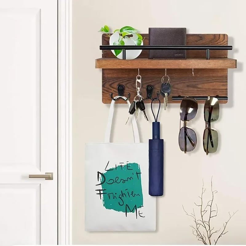 Transform your entryway with this beautifully crafted wooden key holder that combines elegance and functionality. This wall-mounted organiser is designed to keep your space tidy while adding a touch of rustic charm to your home. With multiple hooks and a built-in mail holder, it’s perfect for keeping your essentials within reach and your area clutter-free.