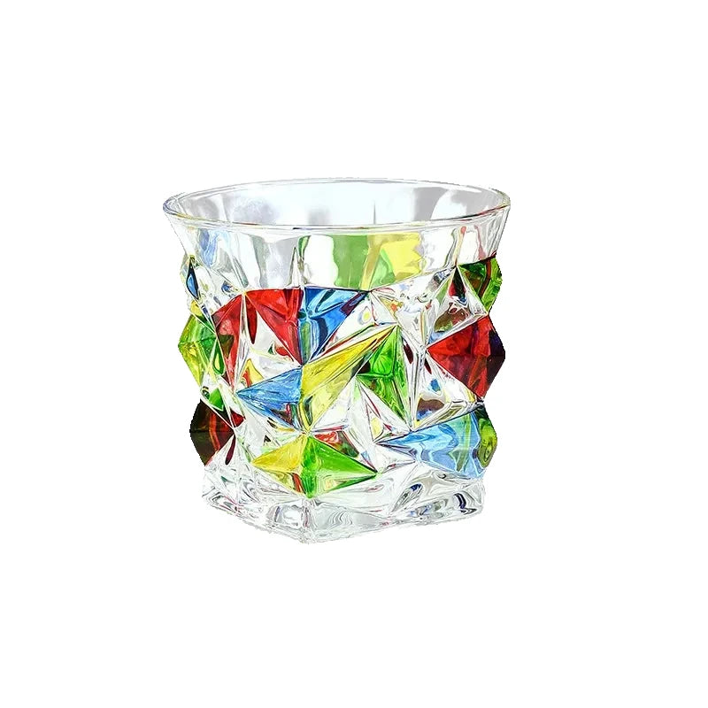 Elevate your sips with these enchanting stained crystal glasses, featuring a unique rotating design that brings a playful sparkle to every drink. Their elegant diamond texture ensures a secure grip, making them perfect for your favorite whiskey, cocktails, or even a fancy glass of water.